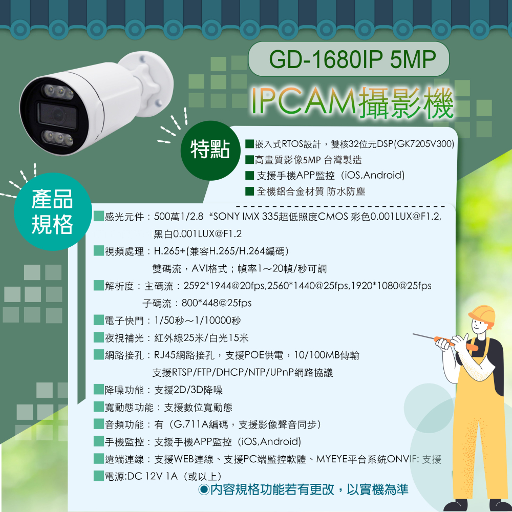 1.本攝影機台灣製造,後續保固維修免煩惱。