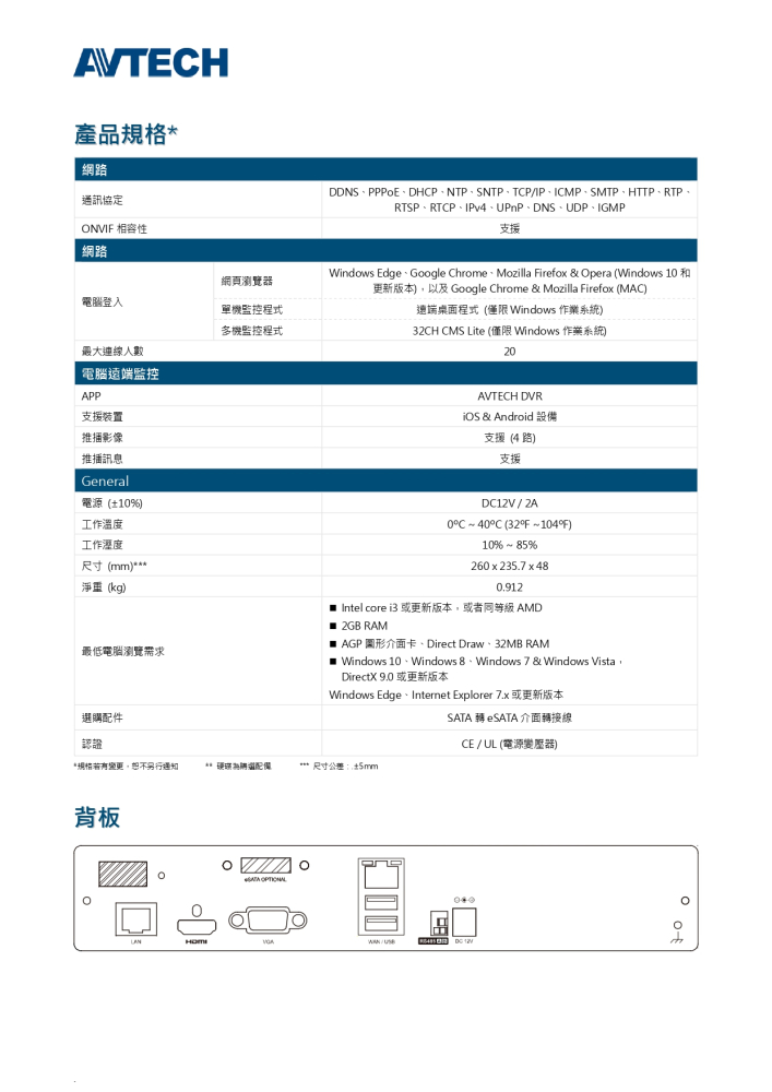 DGH1103BX(US)-U1 AVTECH 4路4K 800萬畫素NVR (不含硬碟) 非XVR不支援同軸攝影機 無POE供電(不清楚規格請聊聊詢問小編)